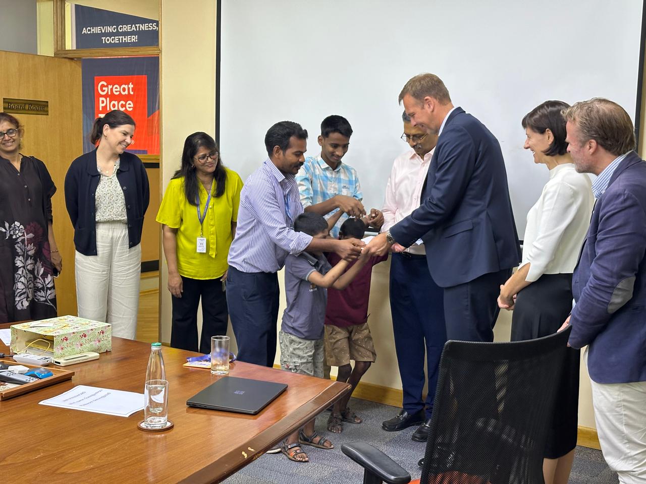 The Managing Trustee handed over a cheque paying for hearing-impaired children’s annual school fees